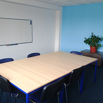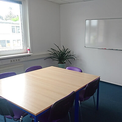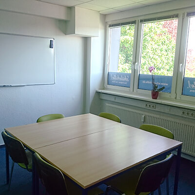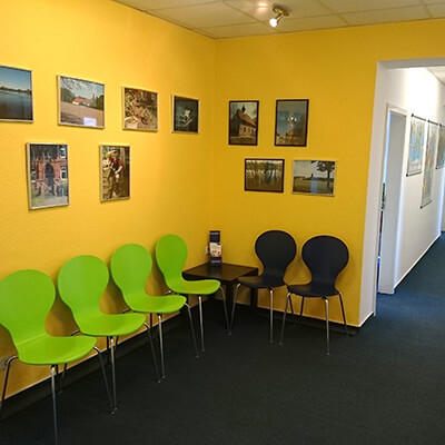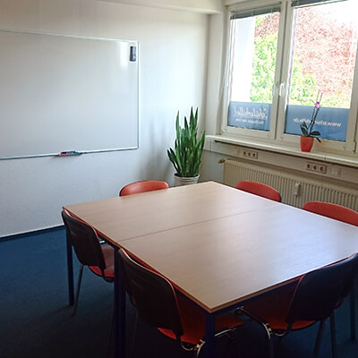 Ein kurzer Rundgang durch unsere Unterrichtsräume. Unsere hellen und freundlichen Schulungsräume sorgen für eine entspannte Lernatmosphäre, in der wir mit unseren Schülerinnen und Schülern erfolgreich üben können. Unser großzügiger Eingangs- und Wartebereich bietet genügend Platz, wenn man sich ein paar Minuten bis zum Unterrichtsbeginn gedulden muss. Alle Unterrichtsräume sind mit hochwertigen und bequemen Möbeln sowie Whiteboards ausgestattet und bieten ausreichend Platz zum Arbeiten.
