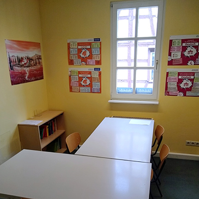 Unsere Schüler finden uns in Osthofen in zentraler Lage in der Ludwig-Schwamb-Straße 6, in der Nähe des alten Rathauses, über ConTherapia (bitte die Freitreppe benutzen). In 3 großzügigen Kursräumen bieten wir zurzeit 35 Wochenkurse in vielen Fächern an. Wir freuen uns auf Ihr Kind.