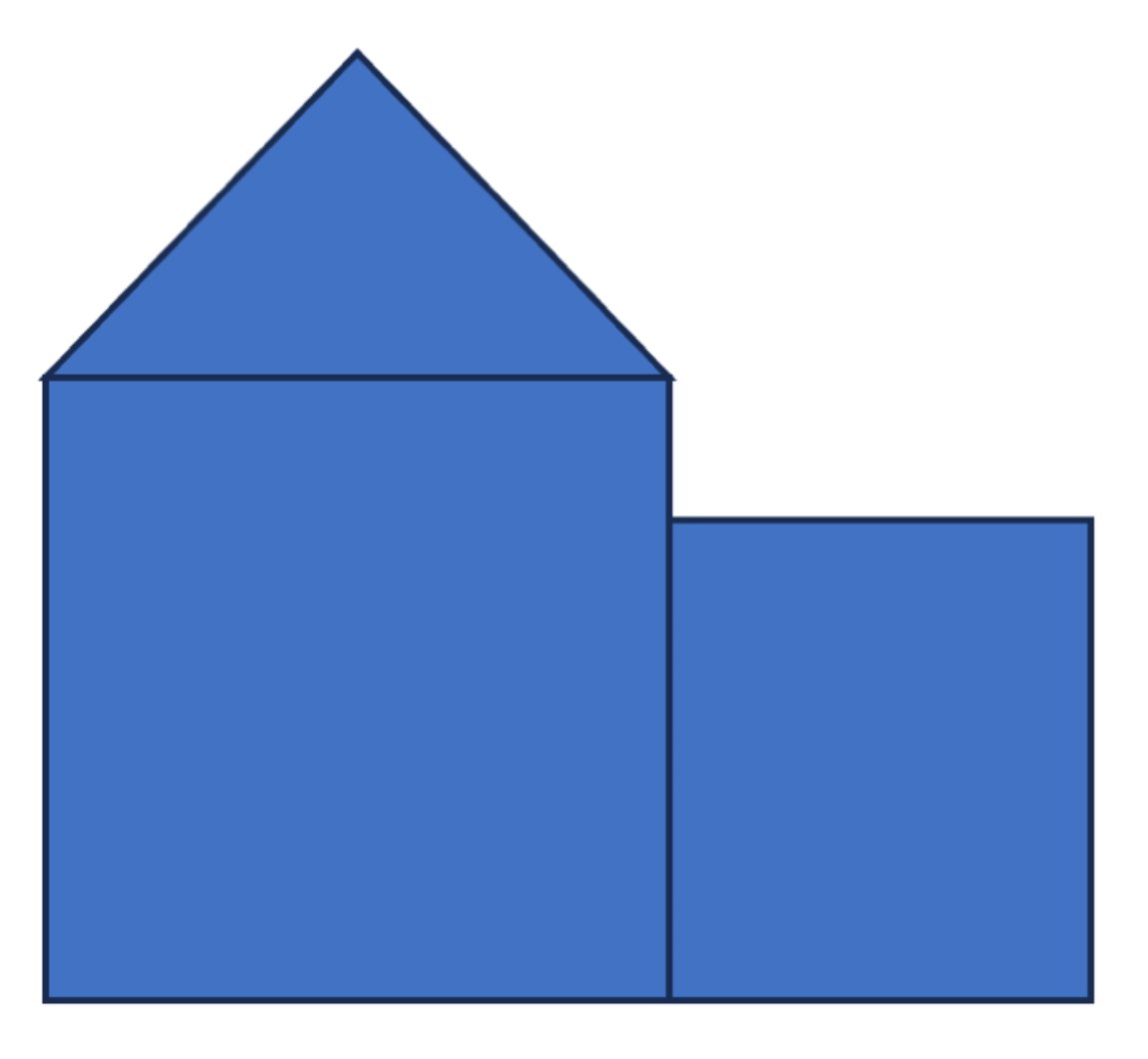 Diese Fläche kannst du nicht einfach so berechnen. Du kannst sie aber in ein Quadrat, ein Rechteck und ein Dreieck teilen – und wie du diese Flächeninhalte berechnen kannst, hast du ja gerade gelernt!