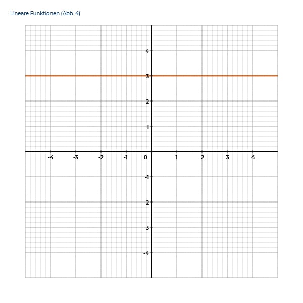 Eine lineare Funktion kann waagerecht im Koordinatensystem liegen. Sie heißt konstante lineare Funktion. Die Steigung einer solchen linearen Funktion ist 0. Deshalb hat sie die Form
