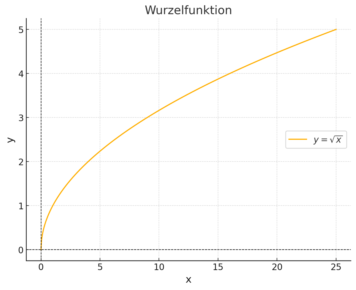 - Die Wurzelfunktion sieht so aus: . Sie kann nur posiitve Werte annehmen.